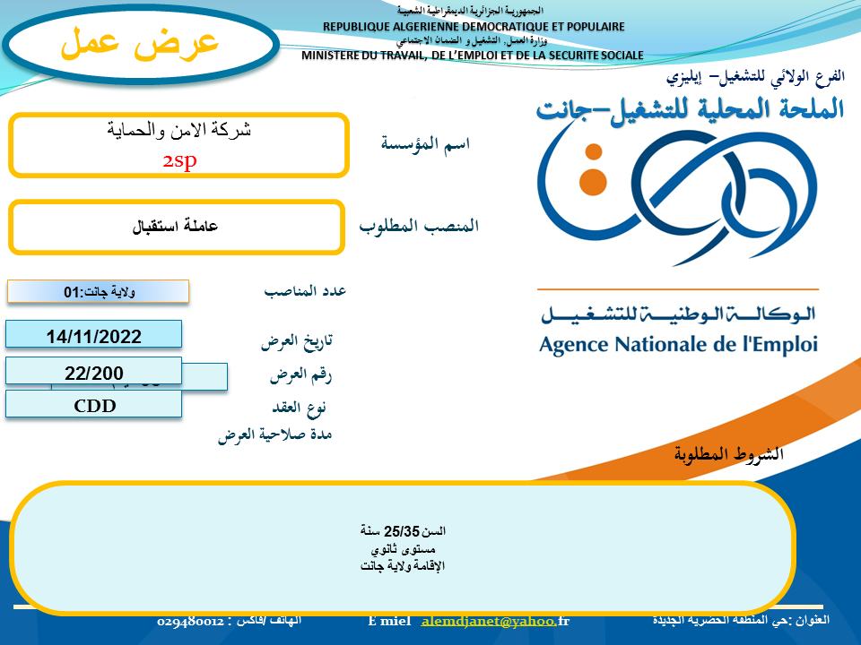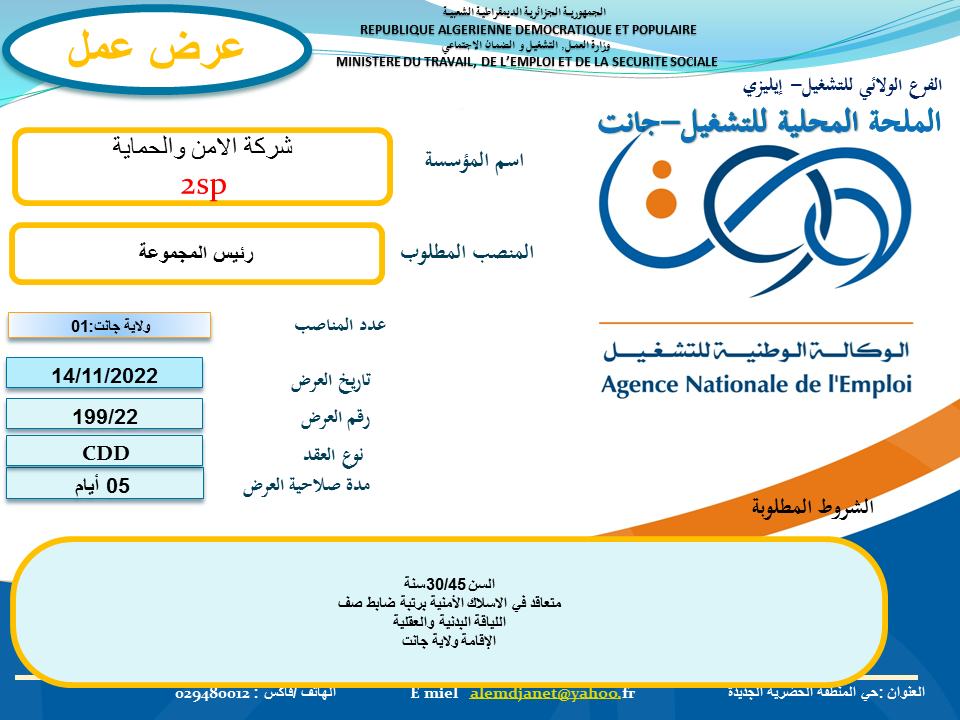 تعلن شركة الأمن والحماية 2sp تابعة لسوناطراك عن فتح عرض عمل بجانت في التخصصات التالية