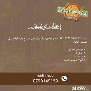 تحضيرا لافتتاح حديقة المغامرات دزاير لاند بسيدي غيلاس (غابة بيدال) تعلن مؤسسة ALL TEX GROUP عن فتح باب التوظيف كما هو مبين في الصورتين